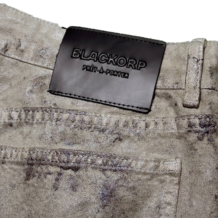 Coated pants Thick, structured fabric, dyed and washed for color effect, coated finish, rust-resistant buttons and rivets.