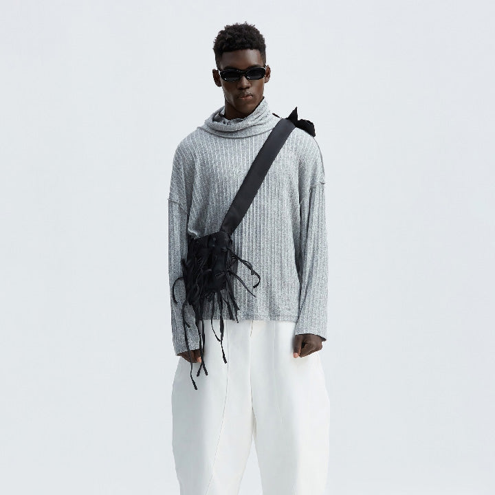 Statement tote bag with an oversized adjustable bow handle. The body is crafted from meticulously arranged small bows, creating a refined and feminine design.