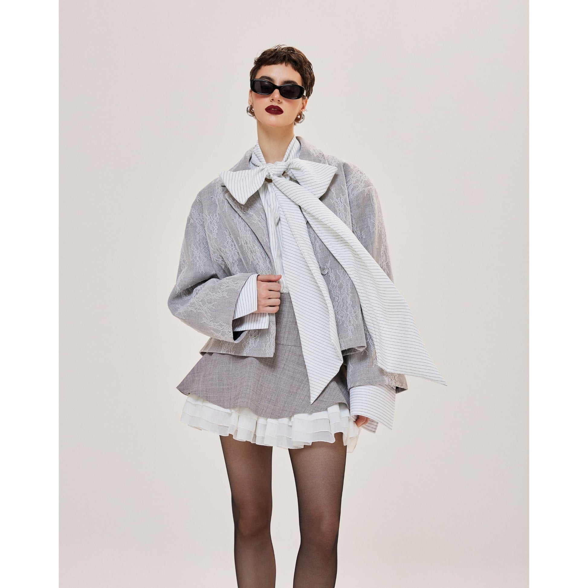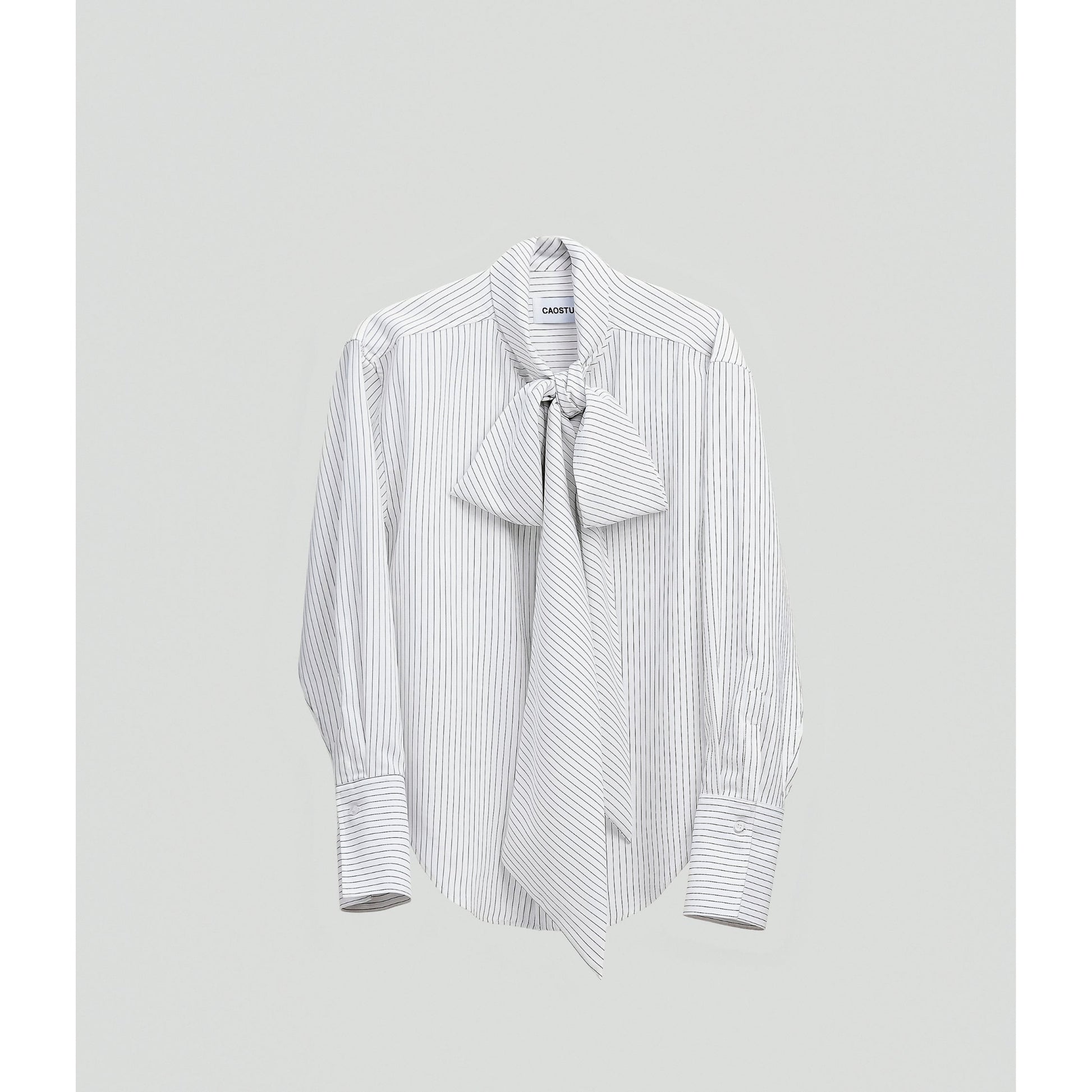 Relaxed-fit shirt with elongated collar ties that can be styled as a bow or left loose. Finished with long cuffs for a modern touch.