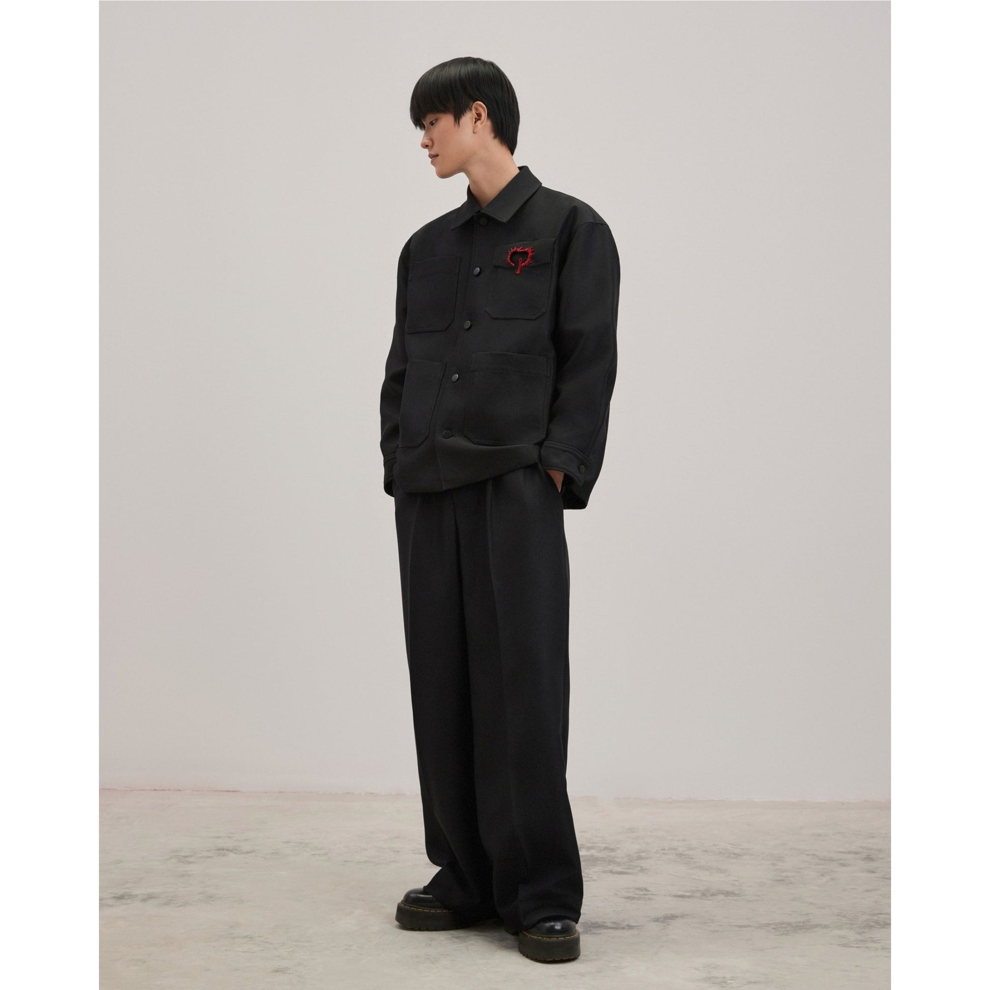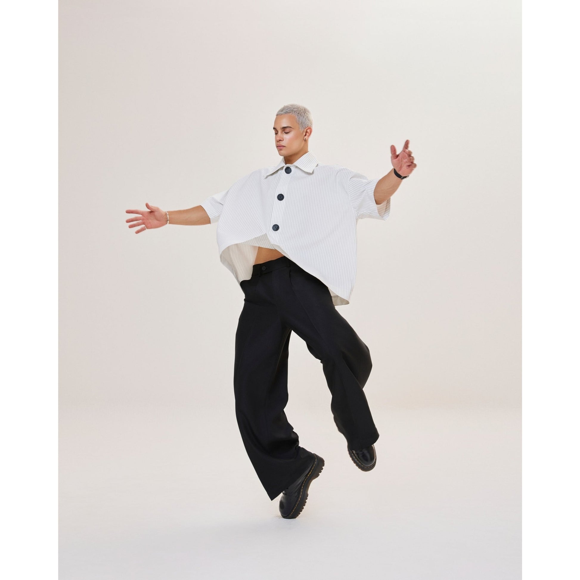 Wide-leg men�s pants in smooth yet structured twill cotton, offering a solid feel and easy movement.