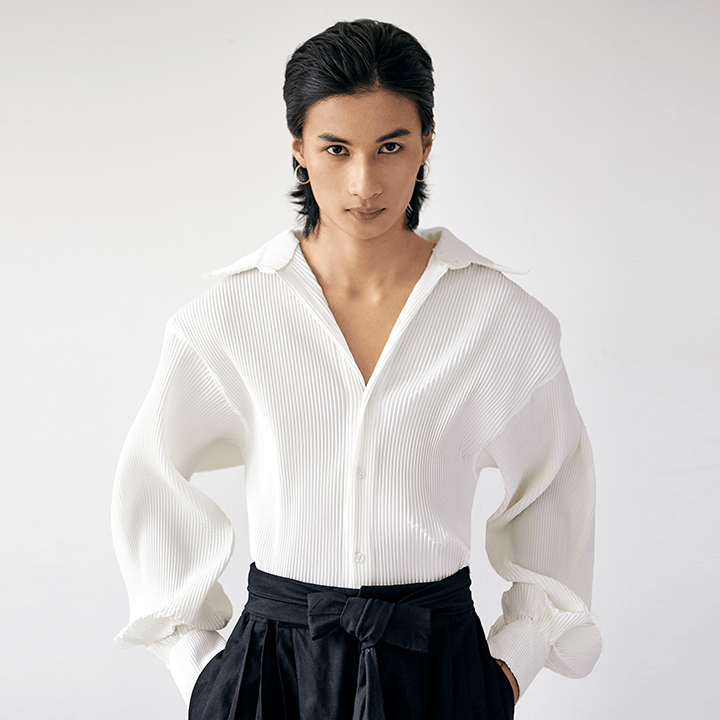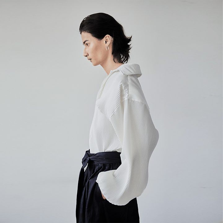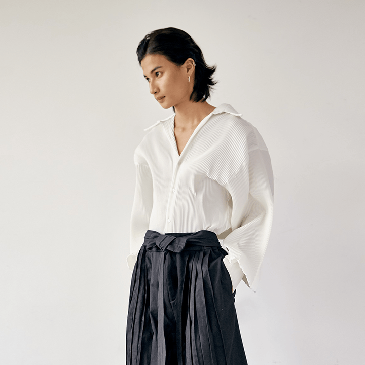 Long-sleeve pleated top